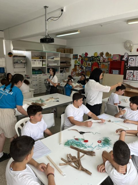 Μετά τη δεξίωση που πραγμτοποιήθηκε στον προαύλιο χώρο του σχολείου, όλα τα παιδιά της Στ΄ τάξης έκαναν ομάδες και έσμιξαν με τα παιδιά που ήρθαν από τα Γιαννιτσά και έκαναν δραστηριότητες γνωριμίας, παιχνίδια και κατασκευές!